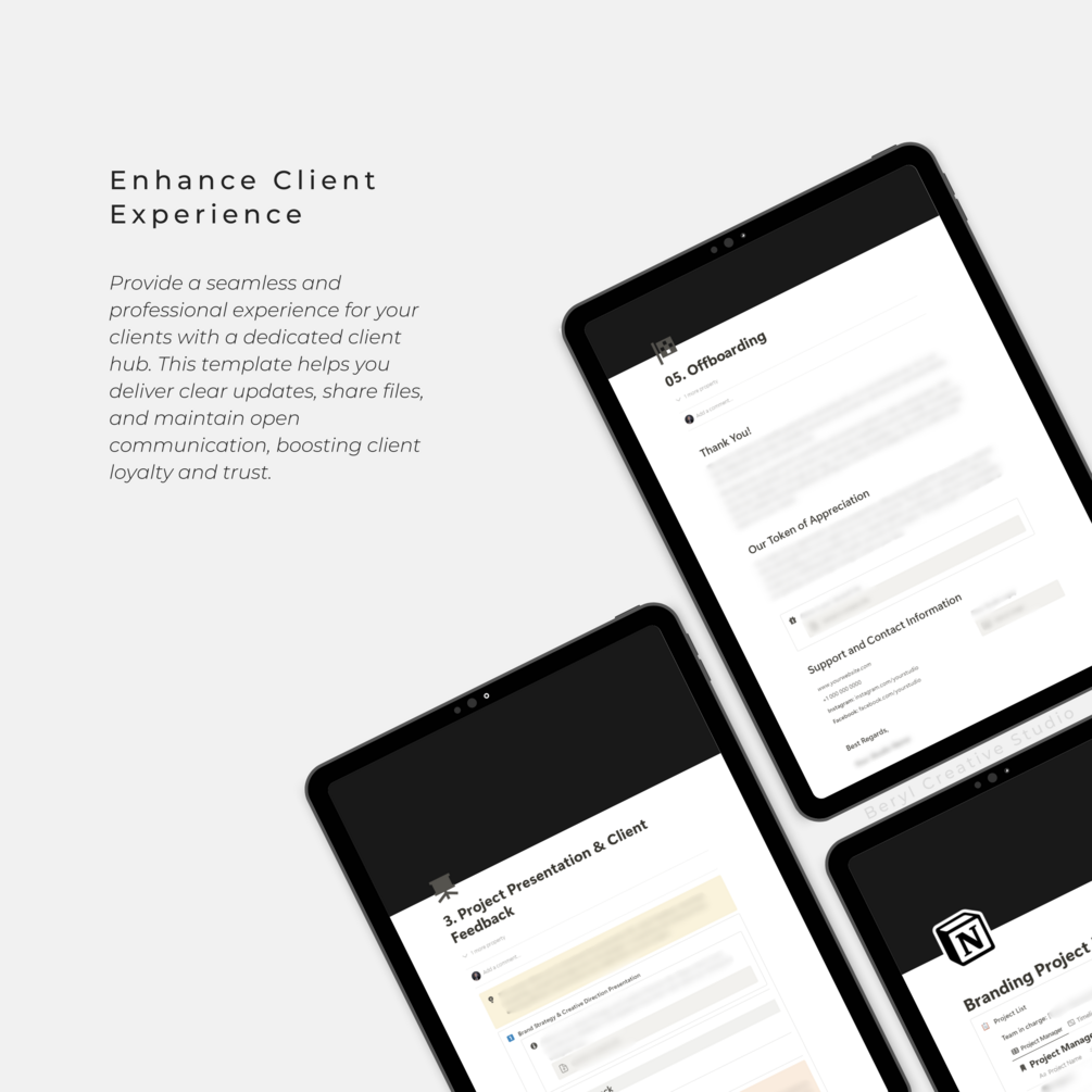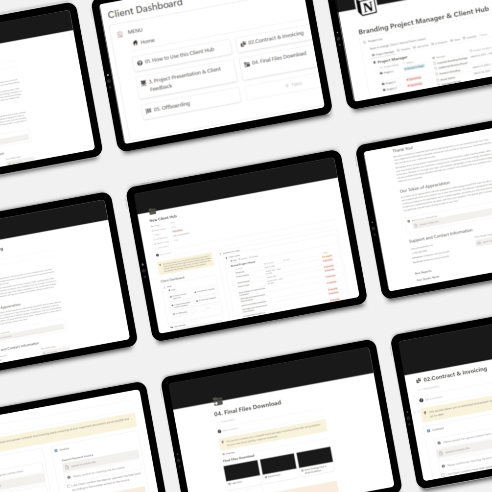 As a freelance brand designer, managing projects and client interactions can be overwhelming. Our "Project Manager & Client Hub Template" is designed to streamline your workflow, ensuring all your project details and client communications are organized and accessible in one place.